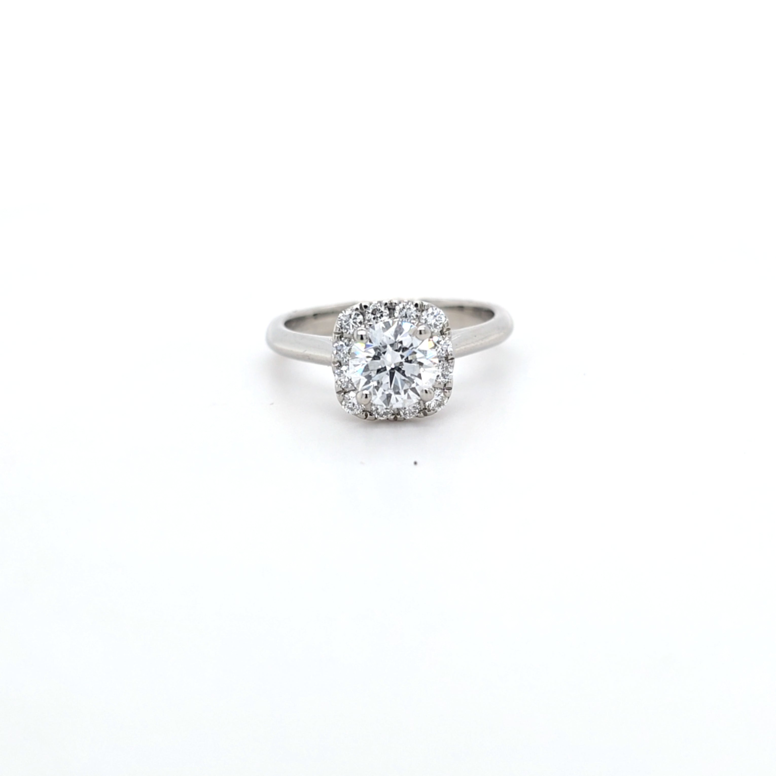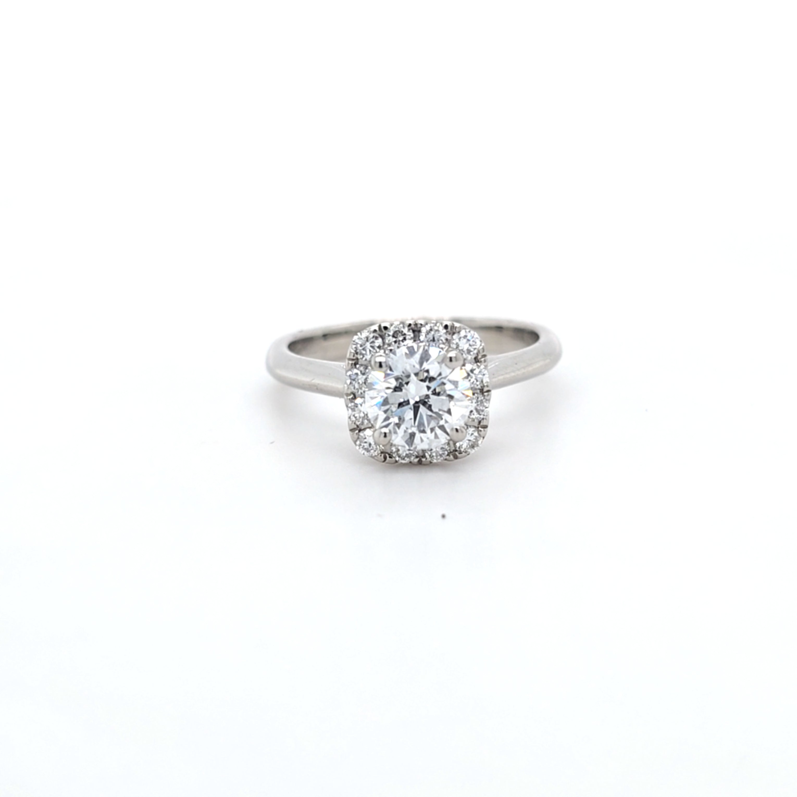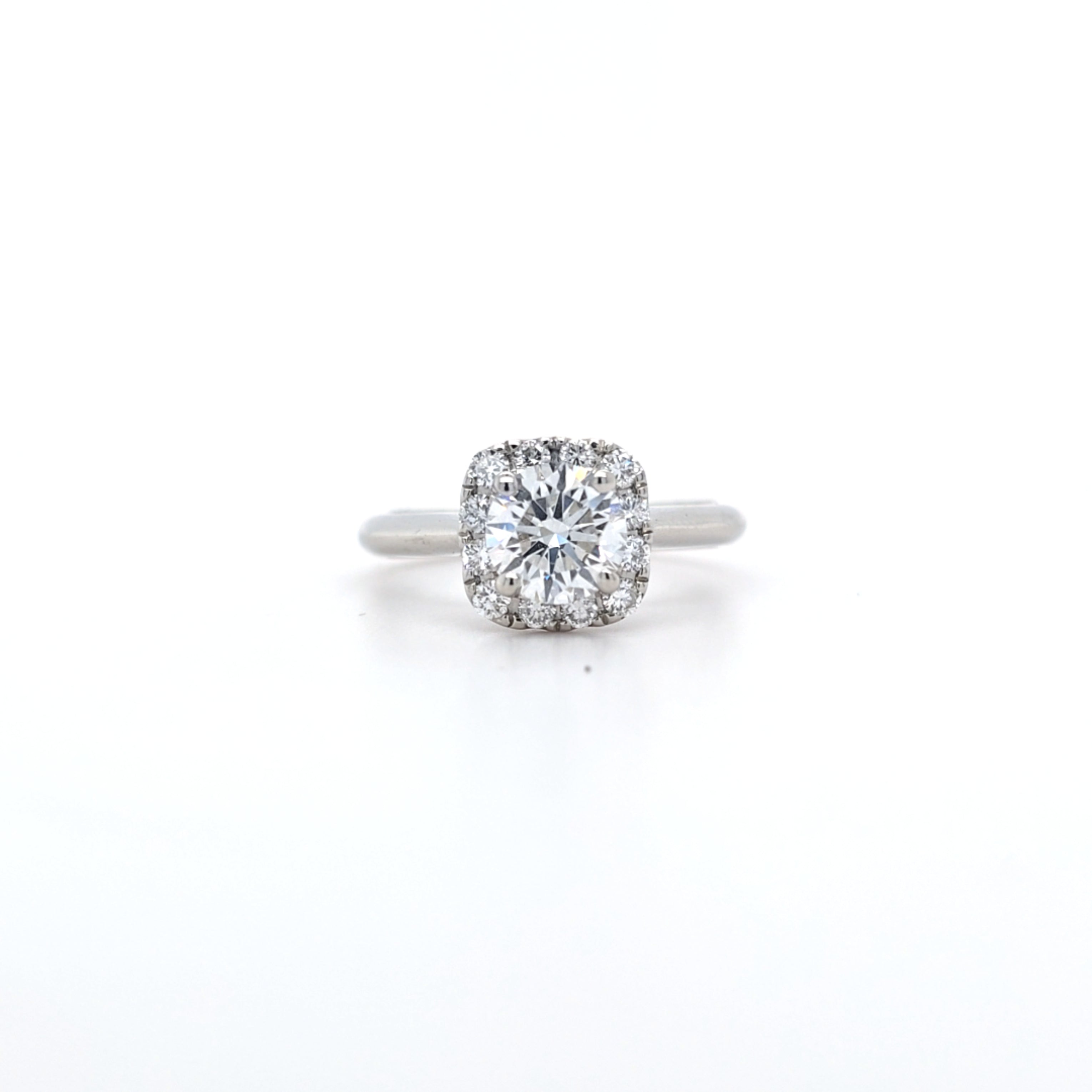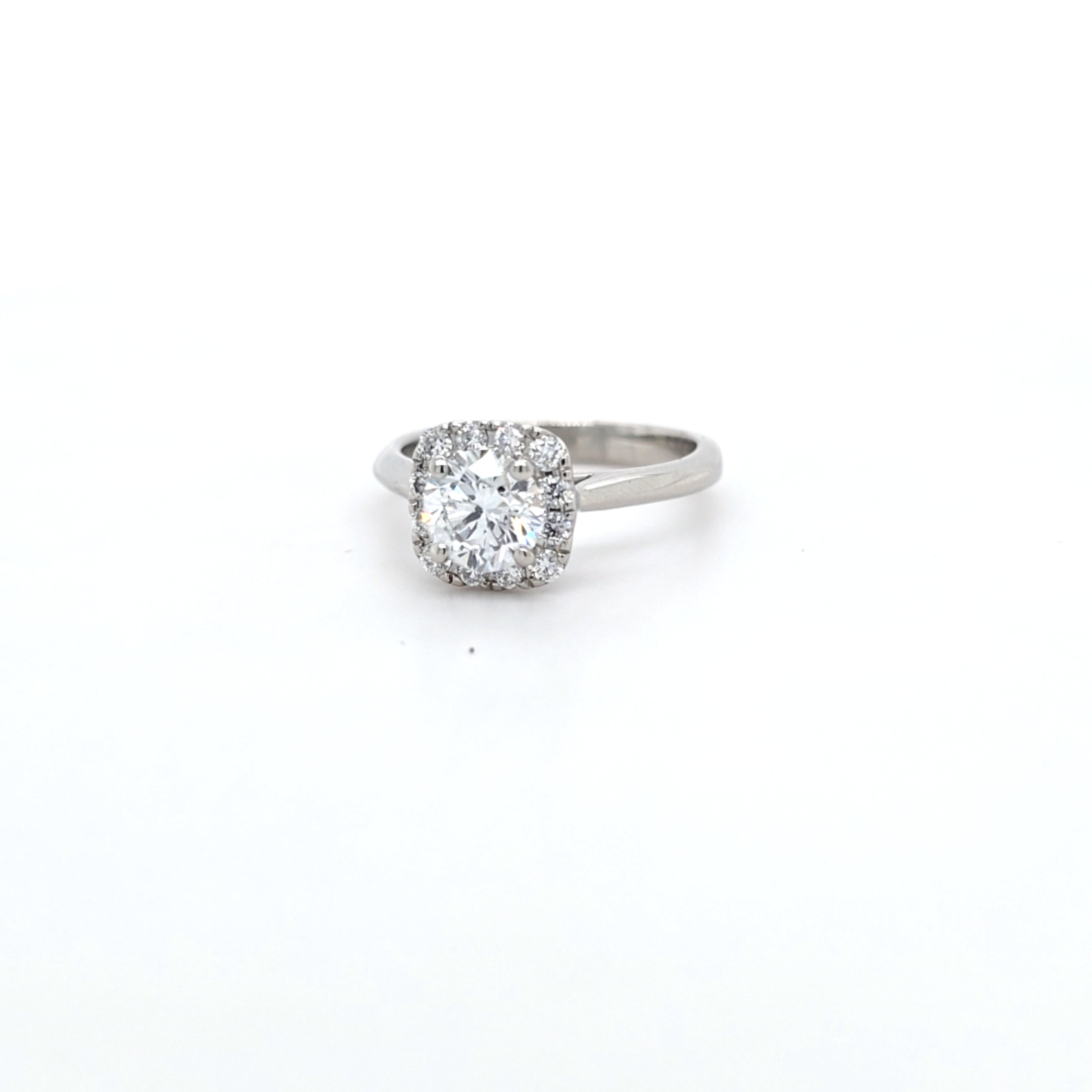 This Beautiful total 1.32ct Round Brilliant Cut LAB Diamond has been set in a Platinum 4 Claw Halo Setting.