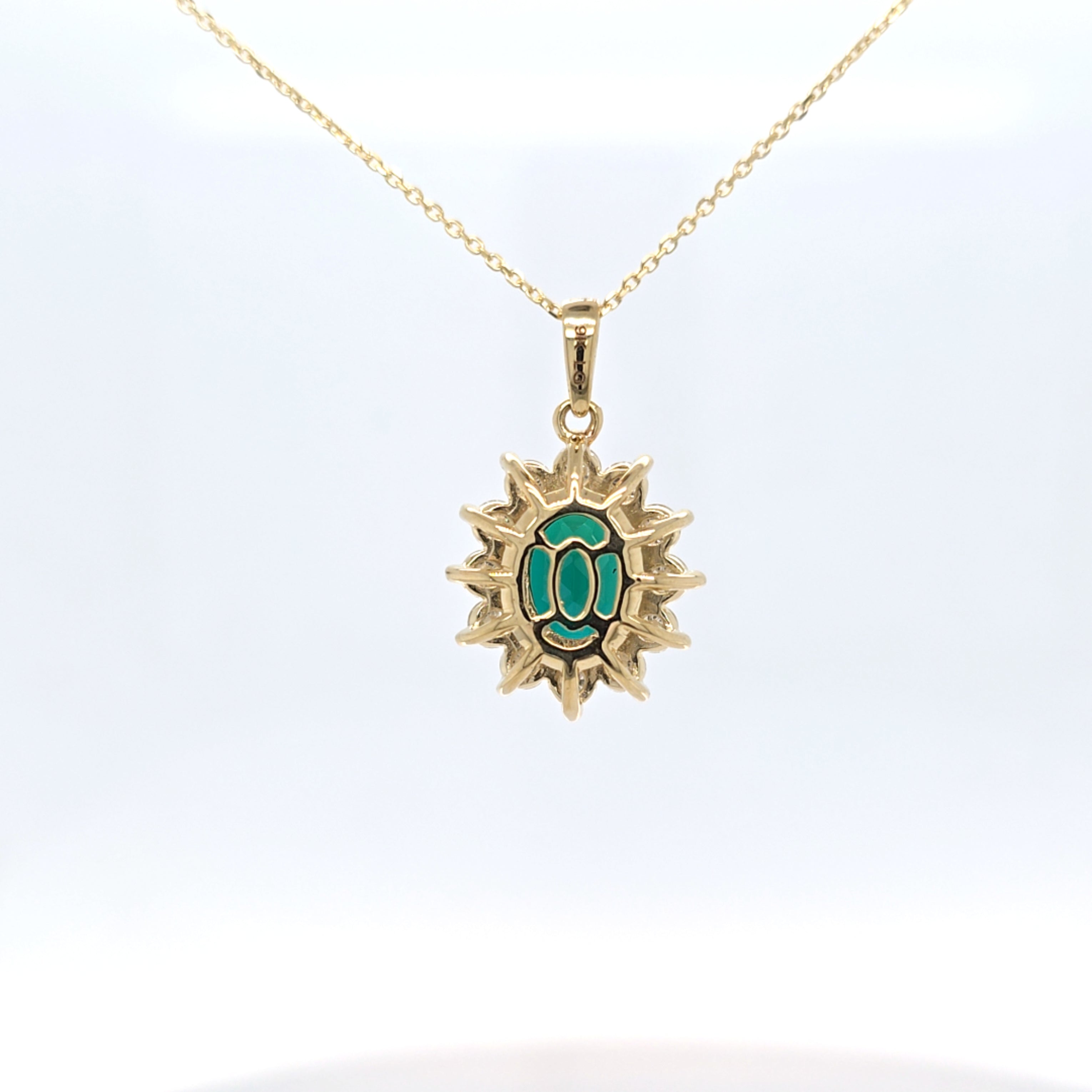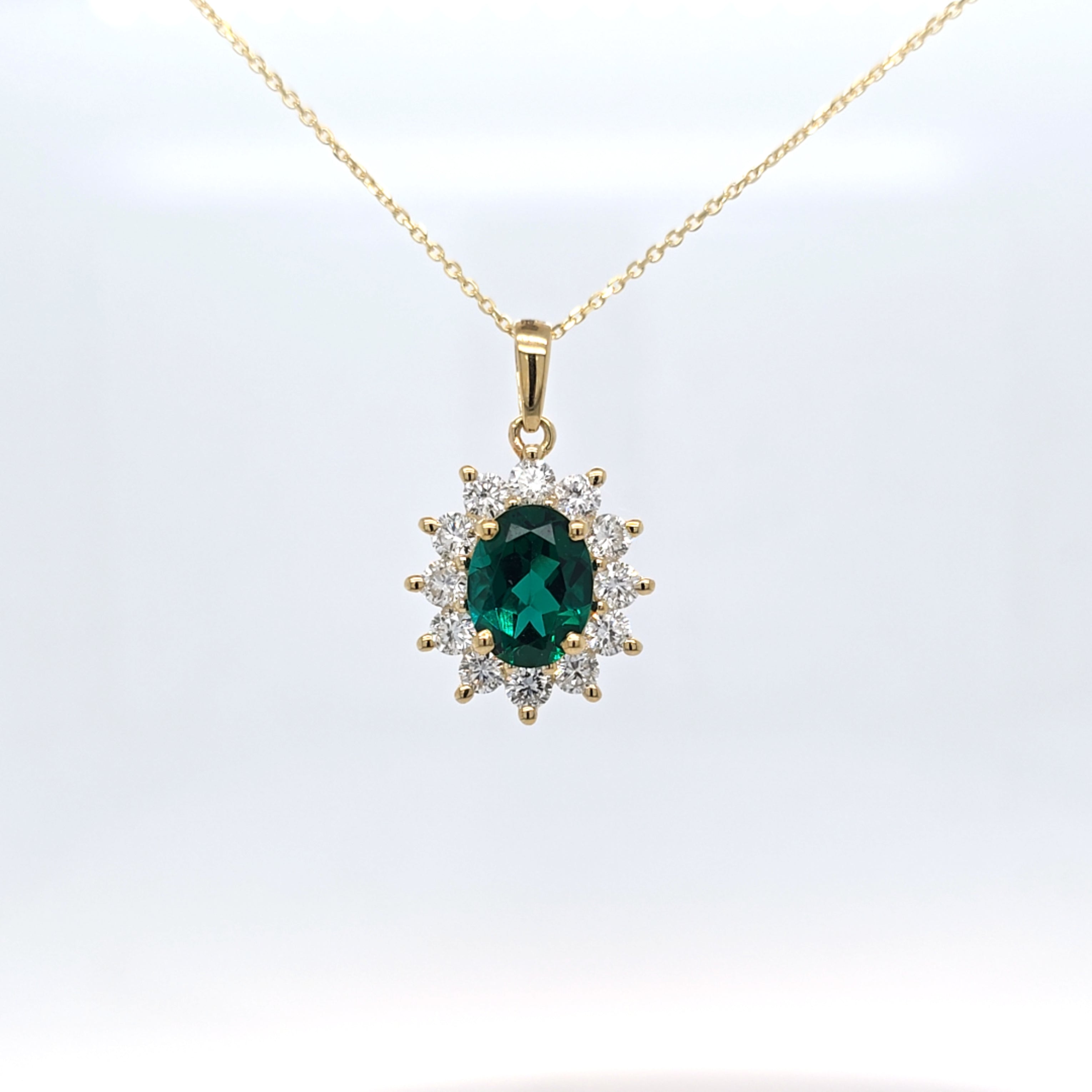 1.44ct LAB Emerald and LAB Diamond Cluster Pendant in 9ct Yellow Gold with Chain