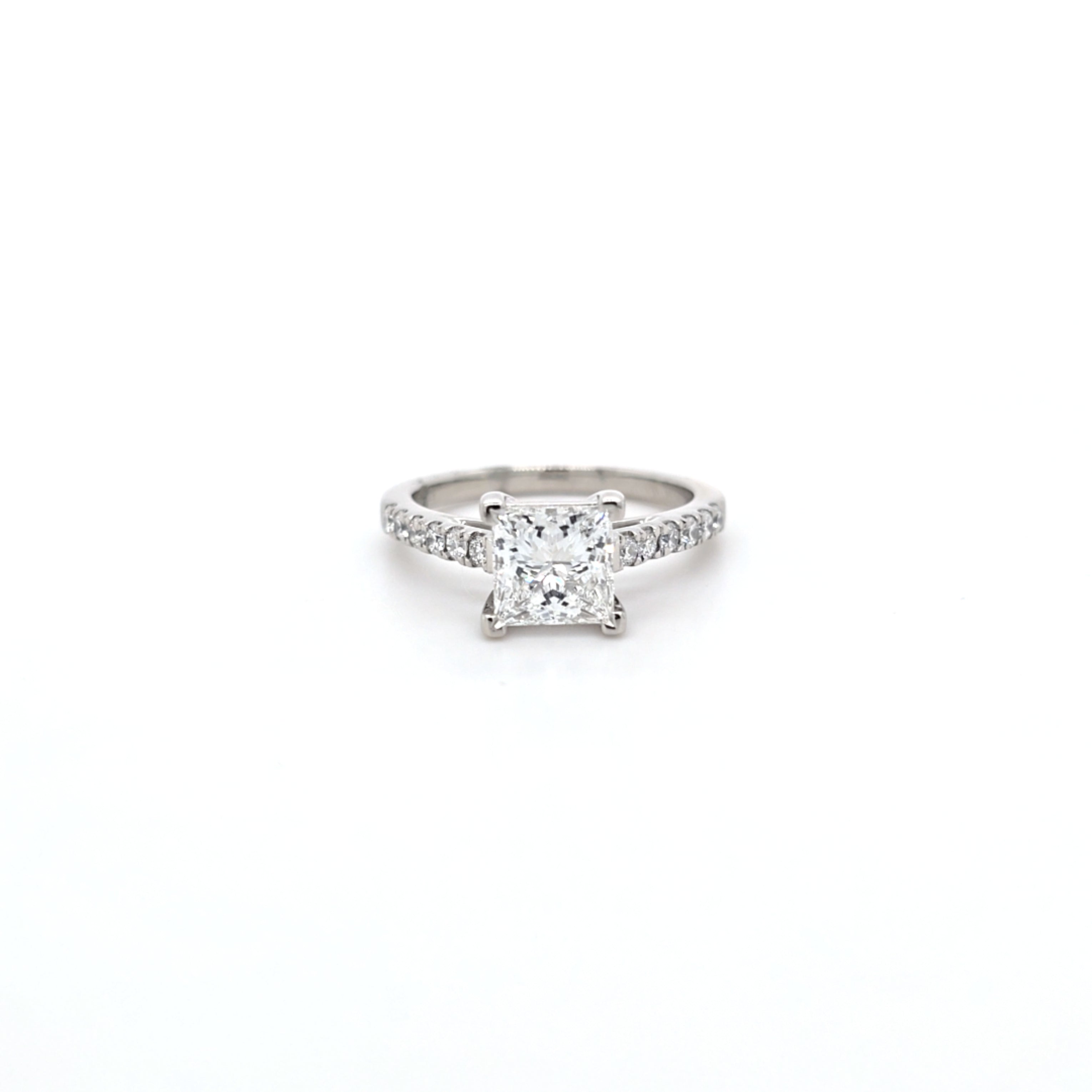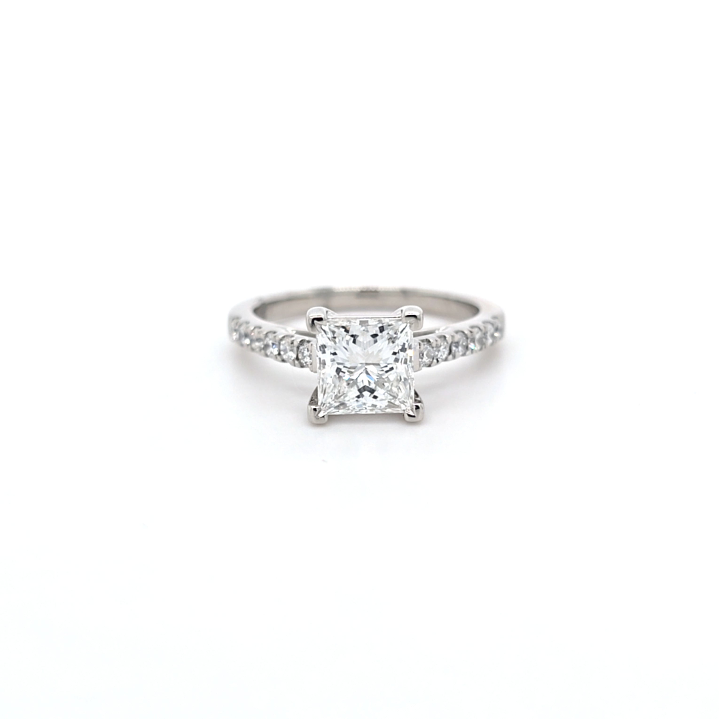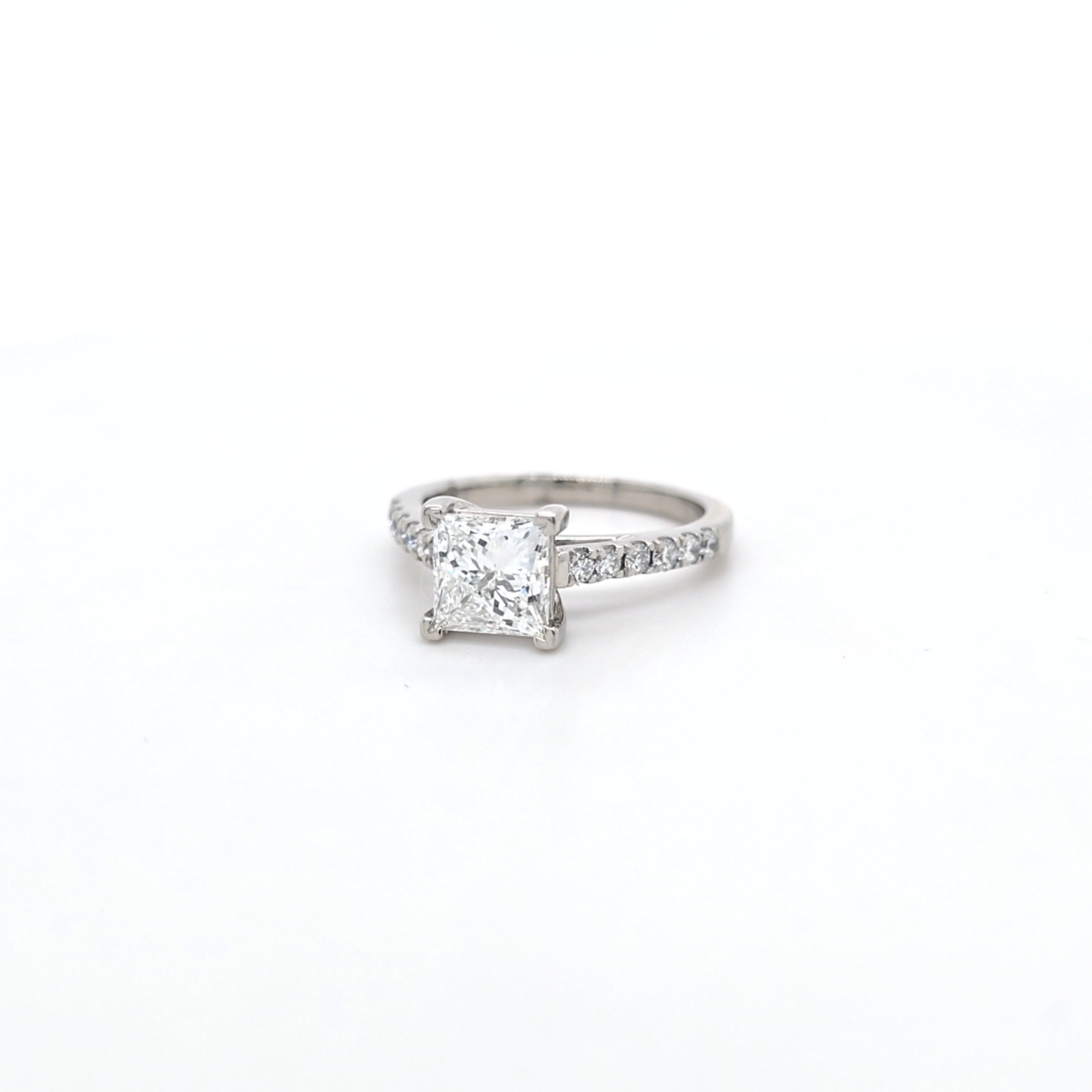 1.53ct D/VS2 LAB Princess Cut Diamond Ring with Diamond Shoulders set in Platinum