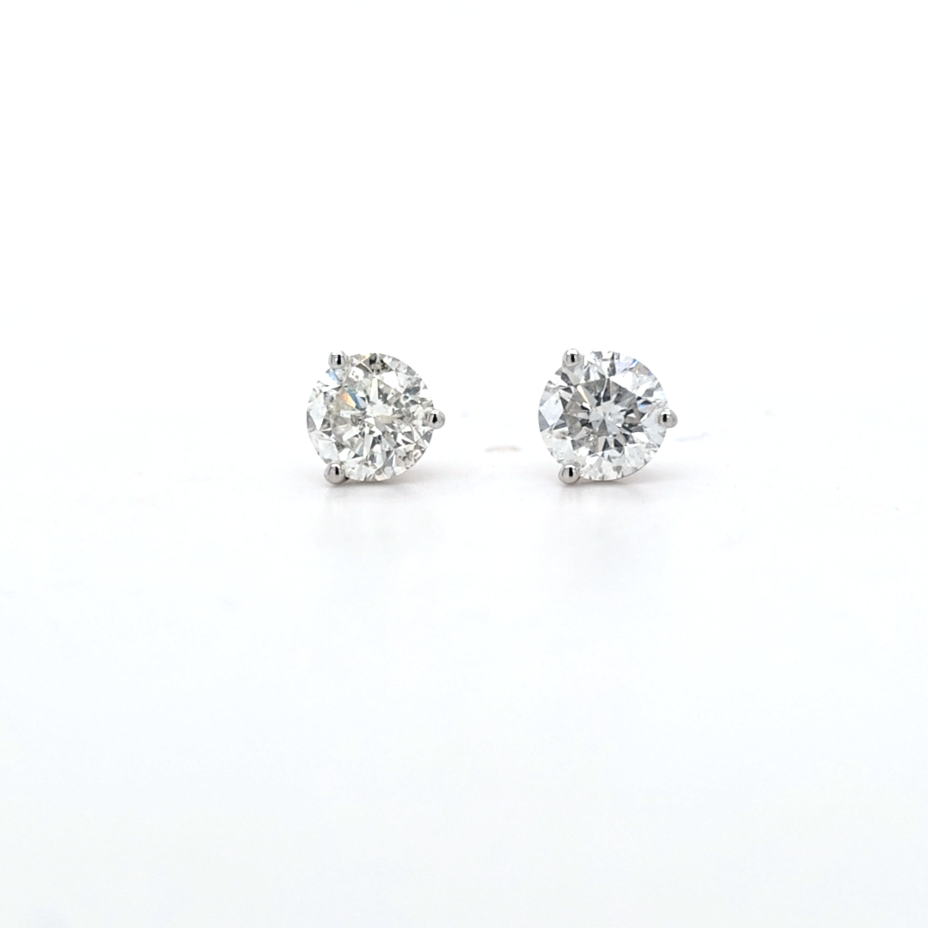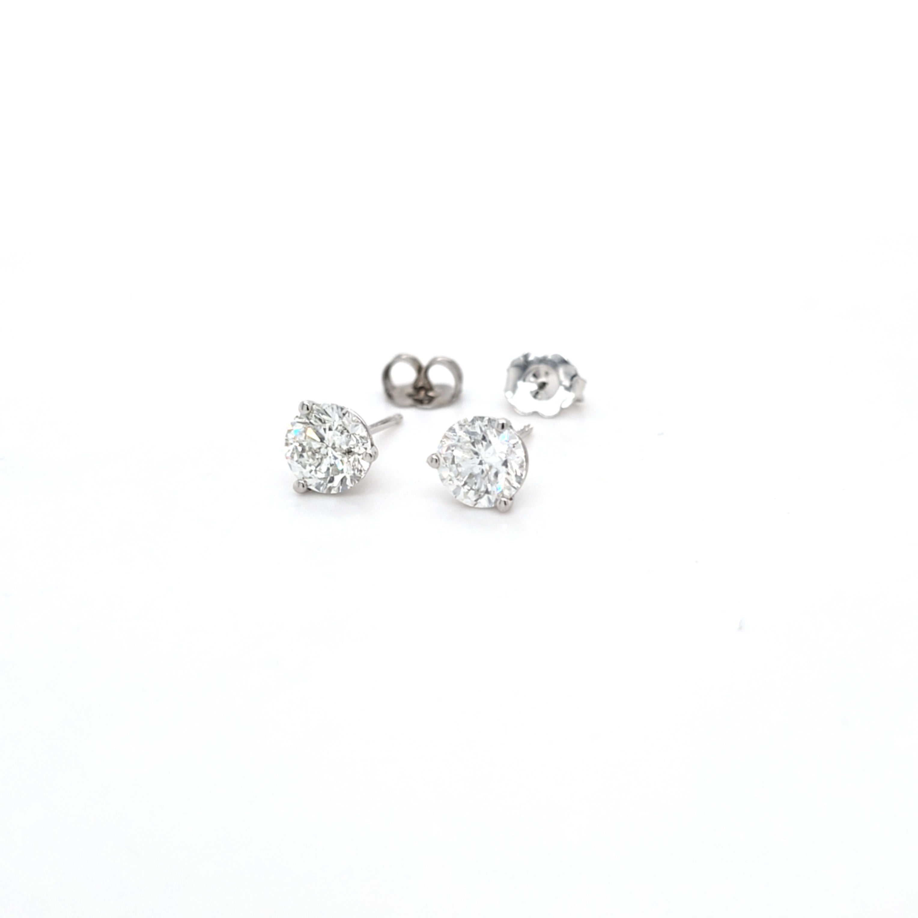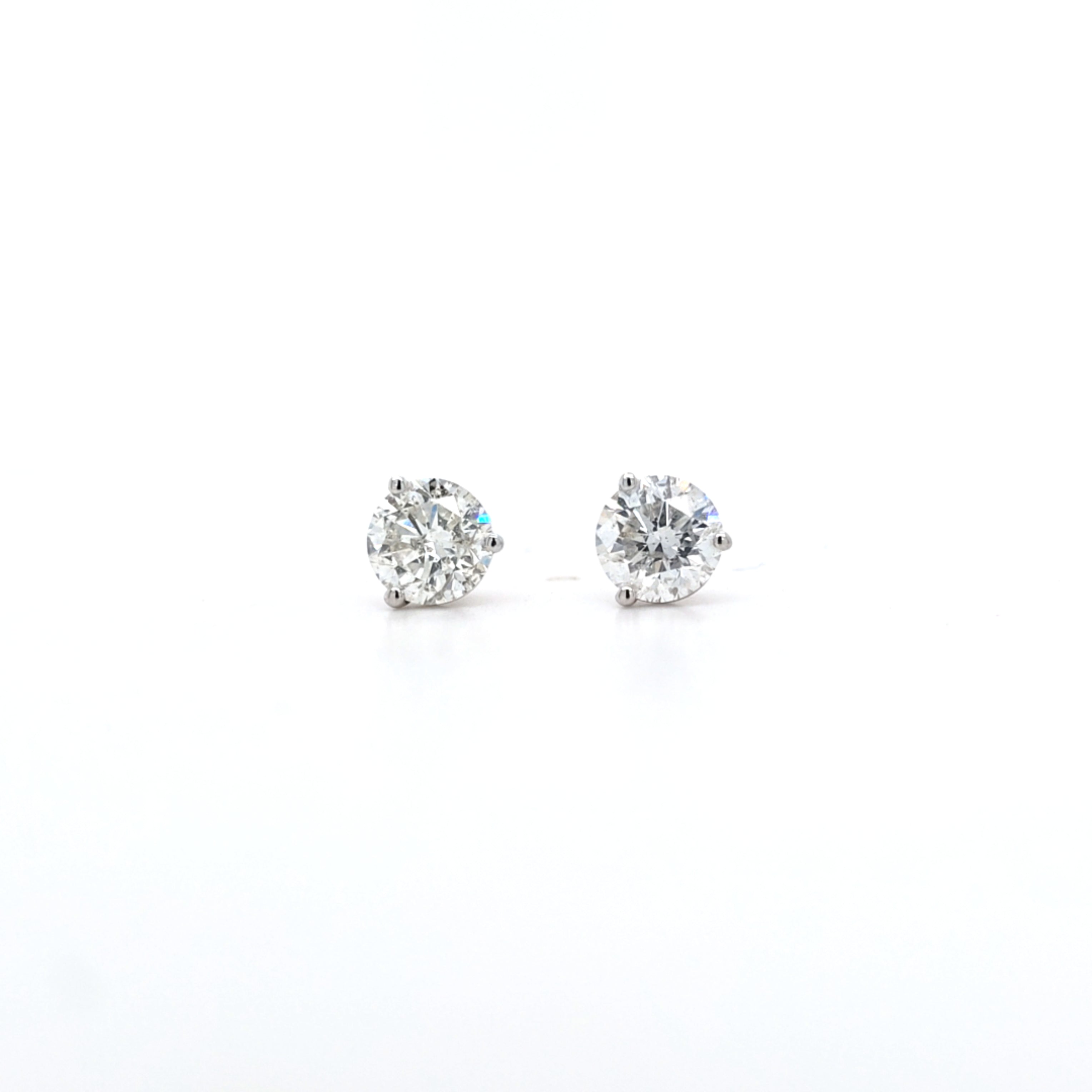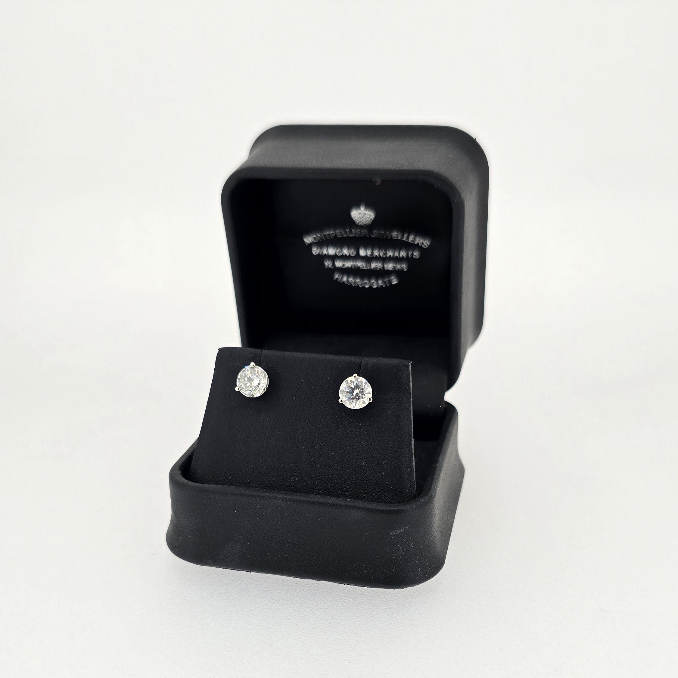 Beautiful 14ct White Gold Diamond Stud Earrings, Each set with a Dazzling and Sparkly 1.00ct+ Round Brilliant Cut Diamond in a Wonderful 3 Claw 14ct White Gold Setting.