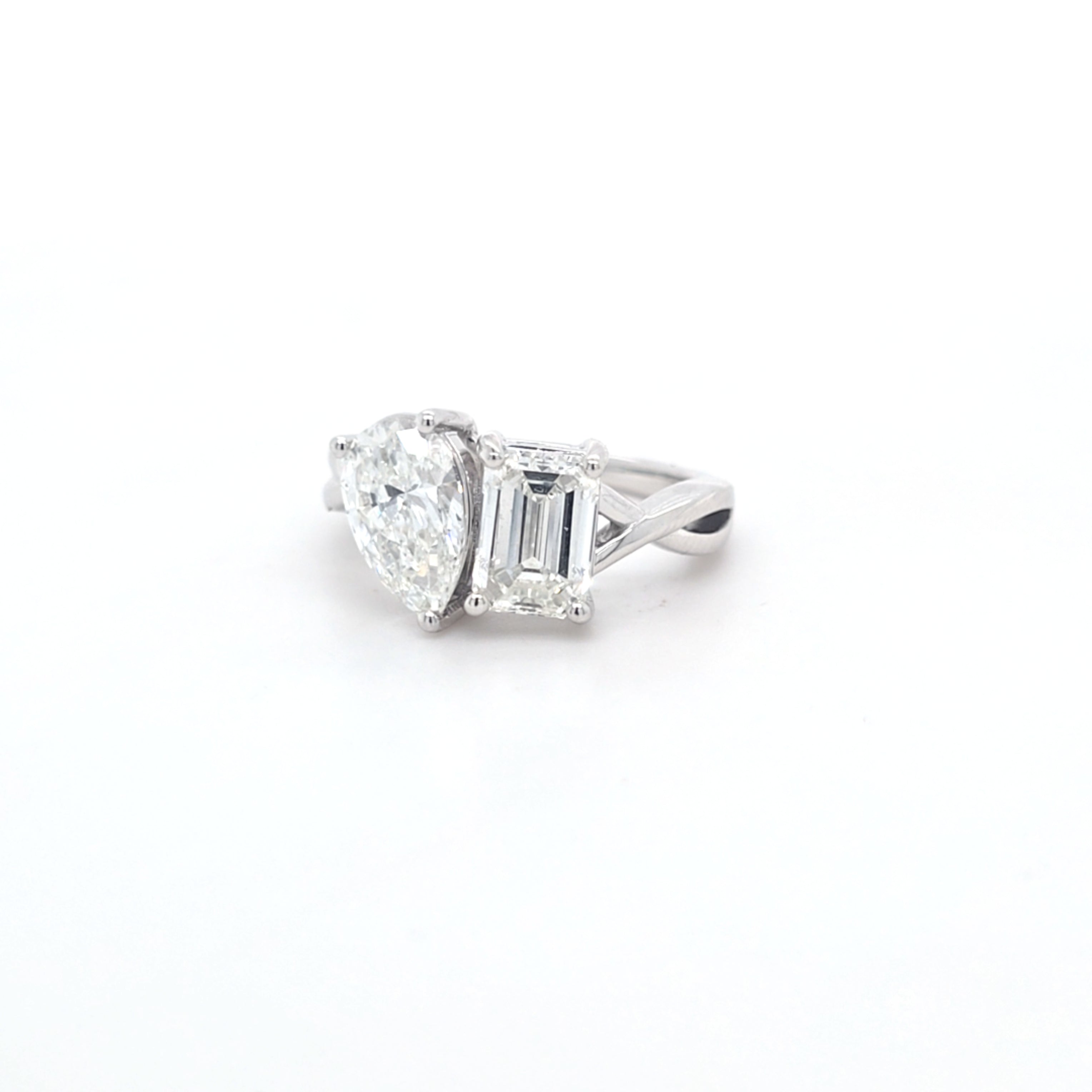 3.04ct G/VS2 Emerald Cut & Pear Shape LAB Diamond Toi et Moi Ring Set in White Gold
