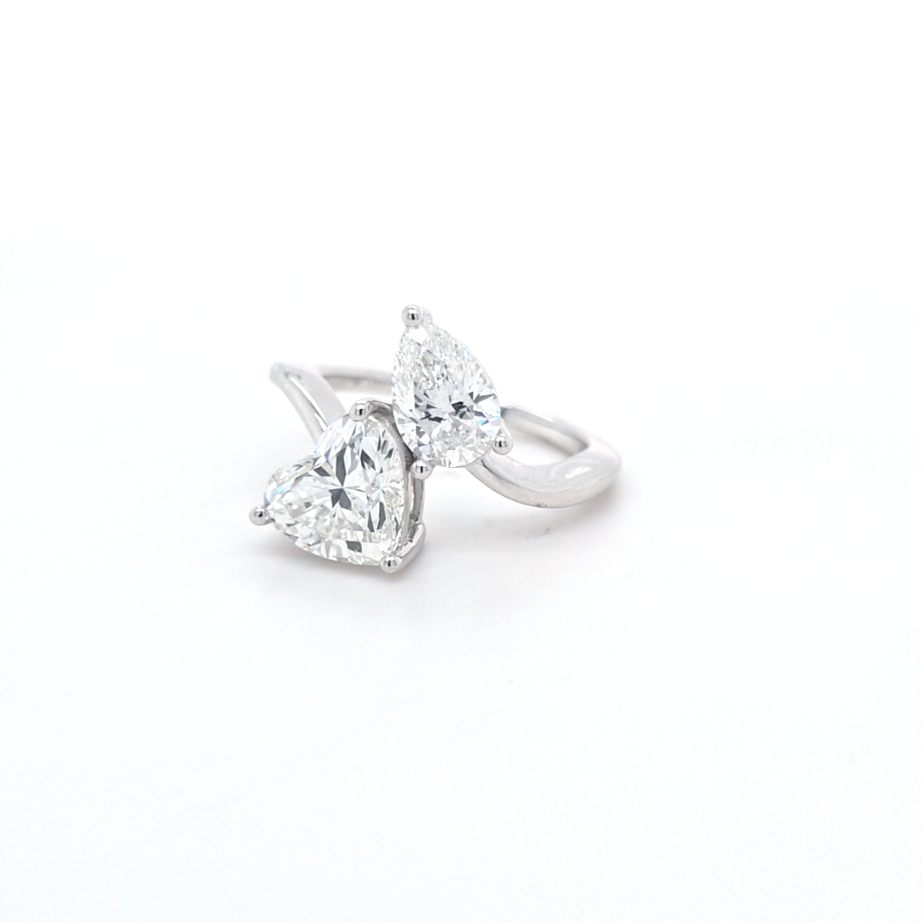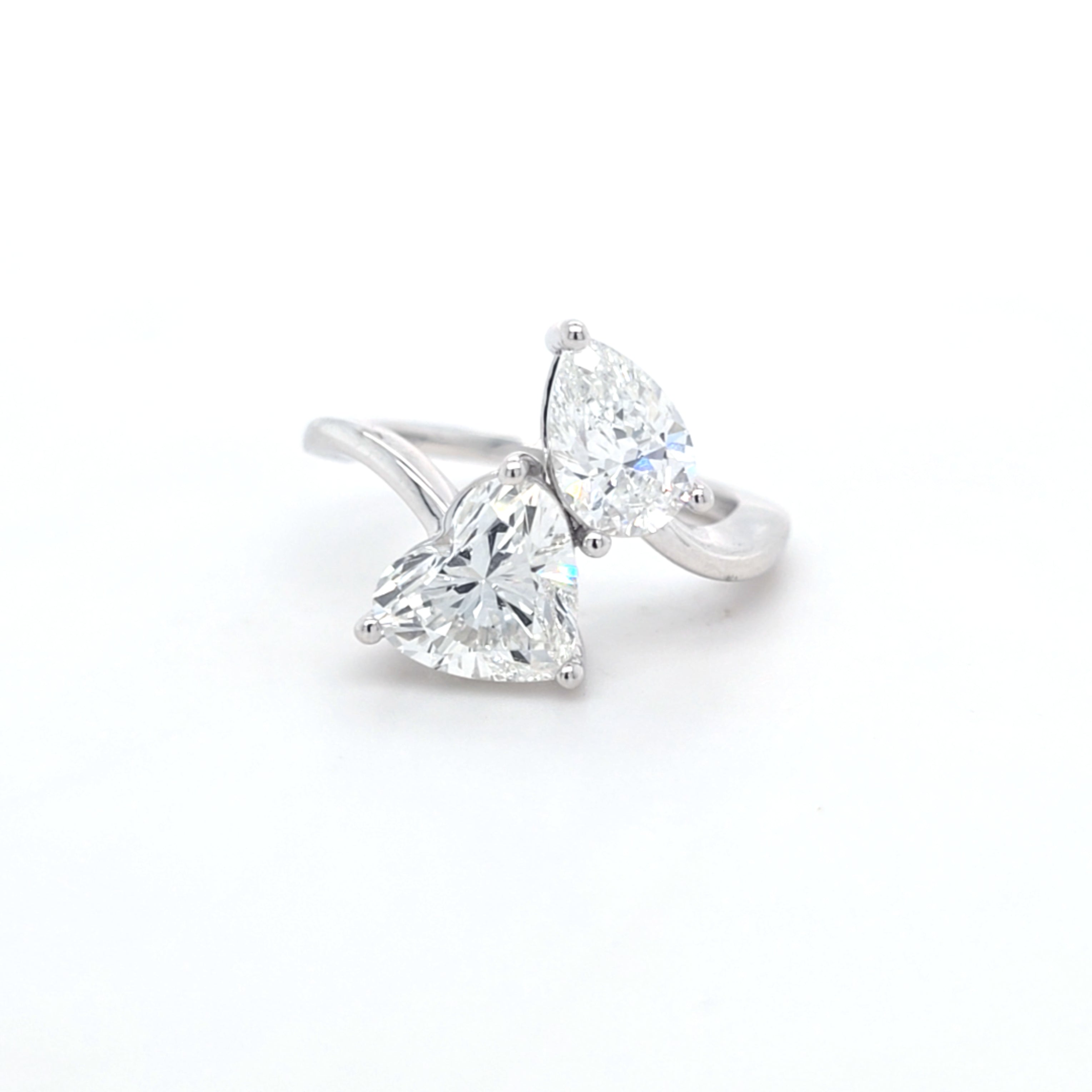 This Beautiful Heart Shape & Pear Shape Laboratory Grown Diamond Toi et Moi Ring is Set in 9ct White Gold.