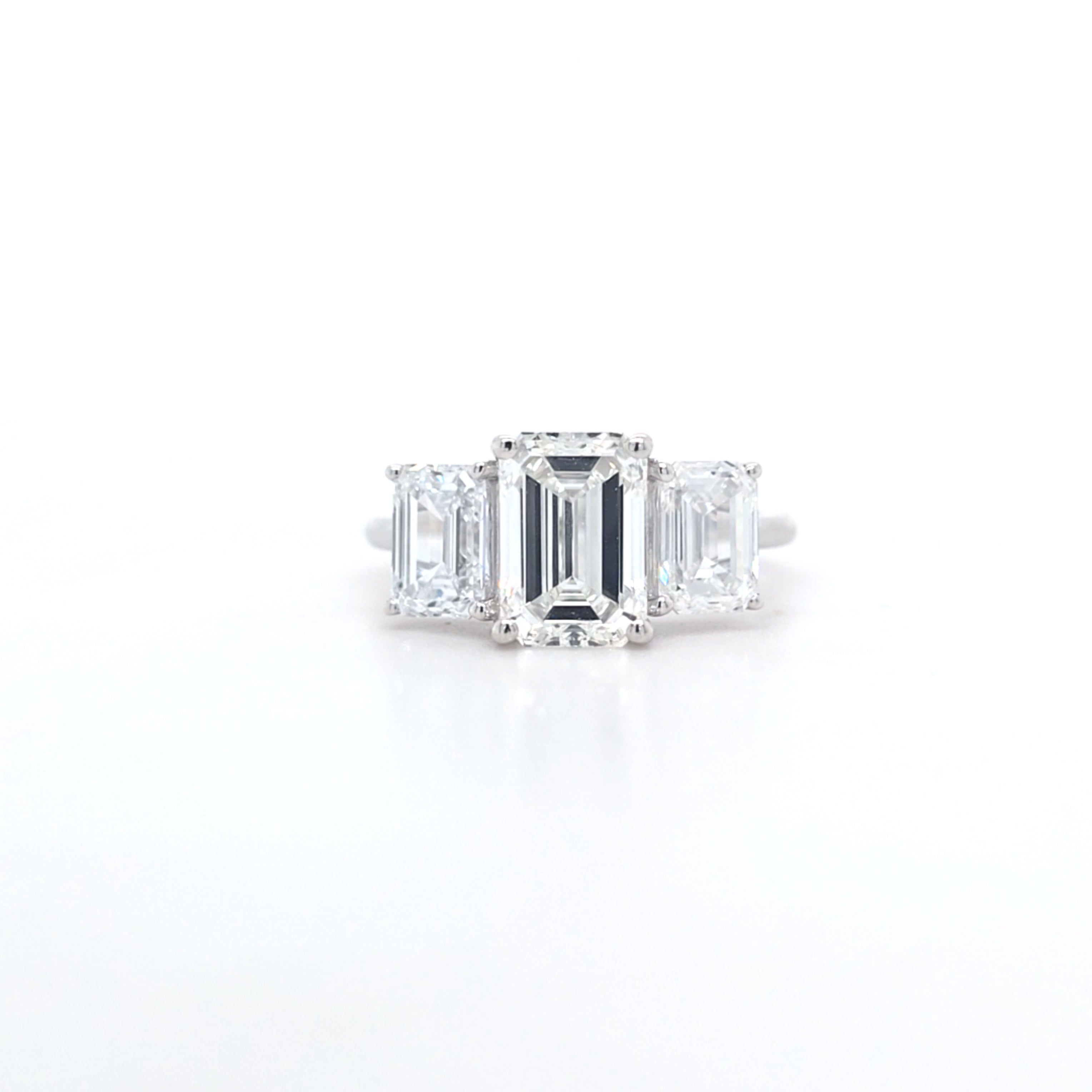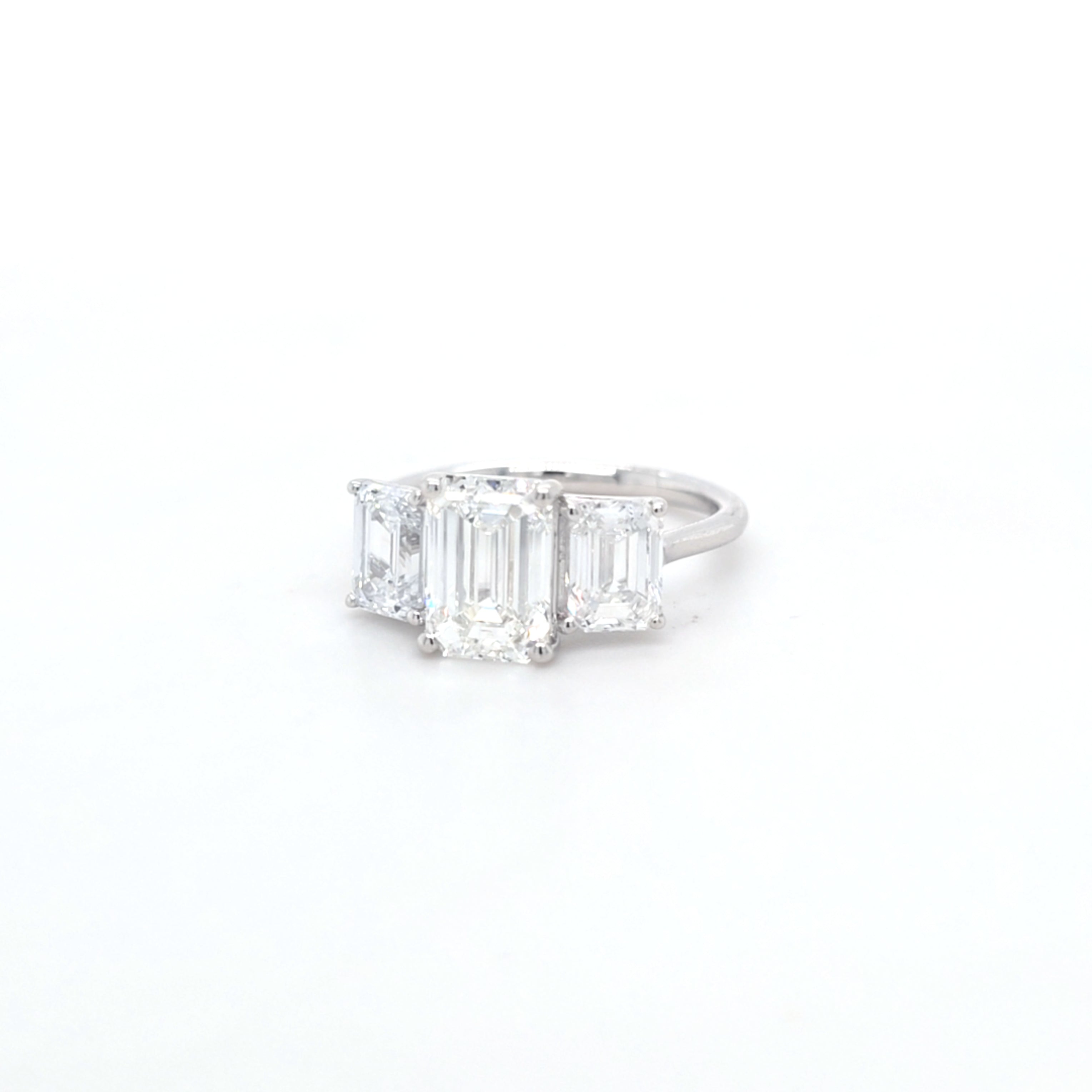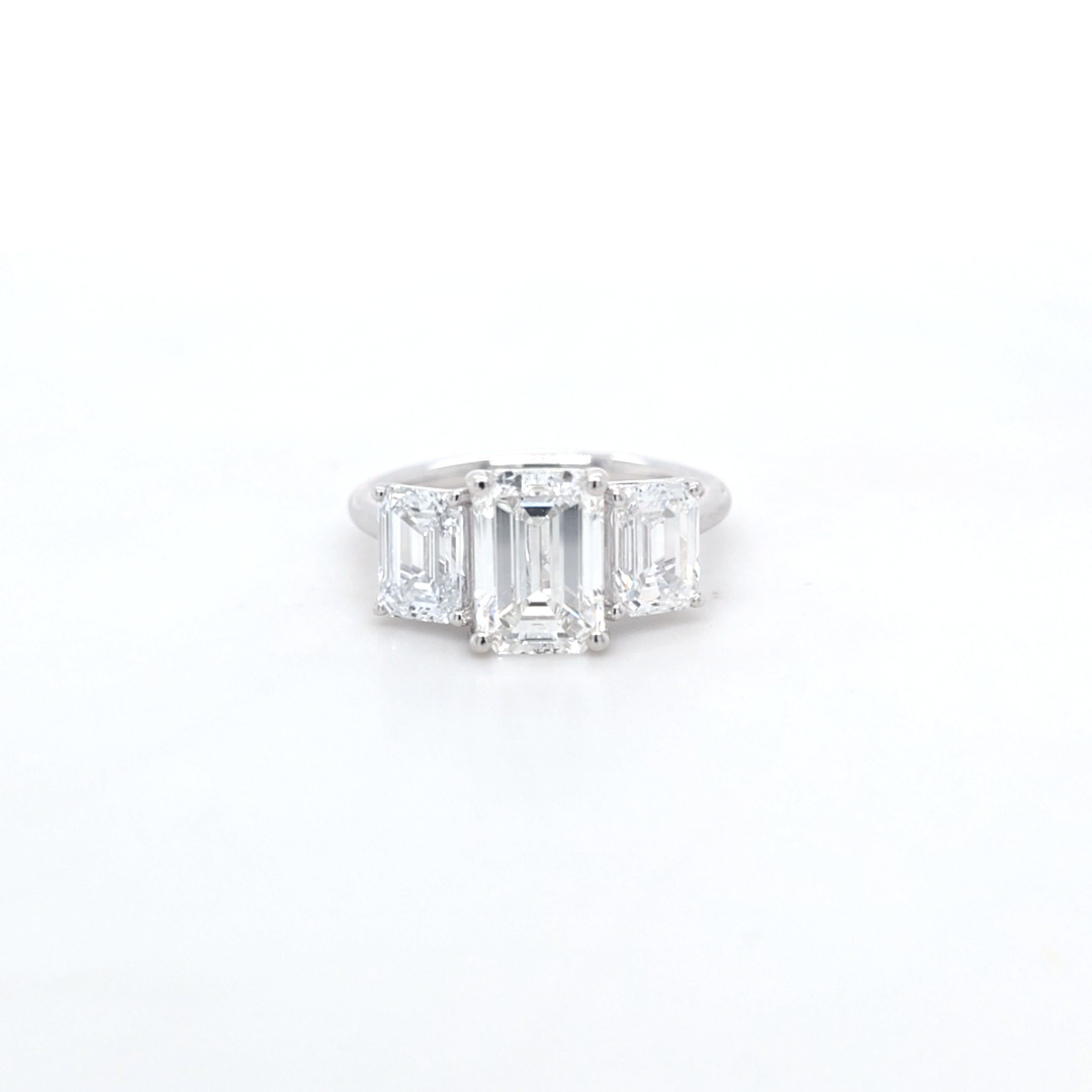 3.75ct E/VS1 Emerald Cut LAB Diamond 3 Stone Ring Set in White Gold