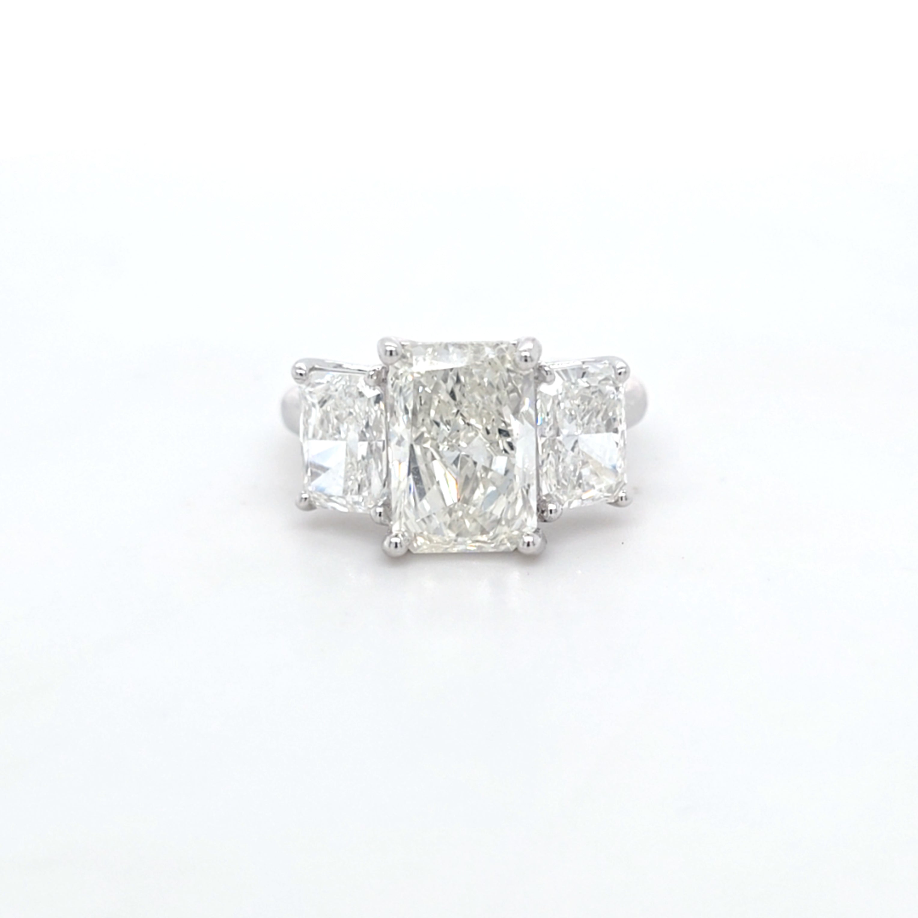 4.92ct G/SI1 Radiant Cut LAB Diamond 3 Stone Ring Set in White Gold