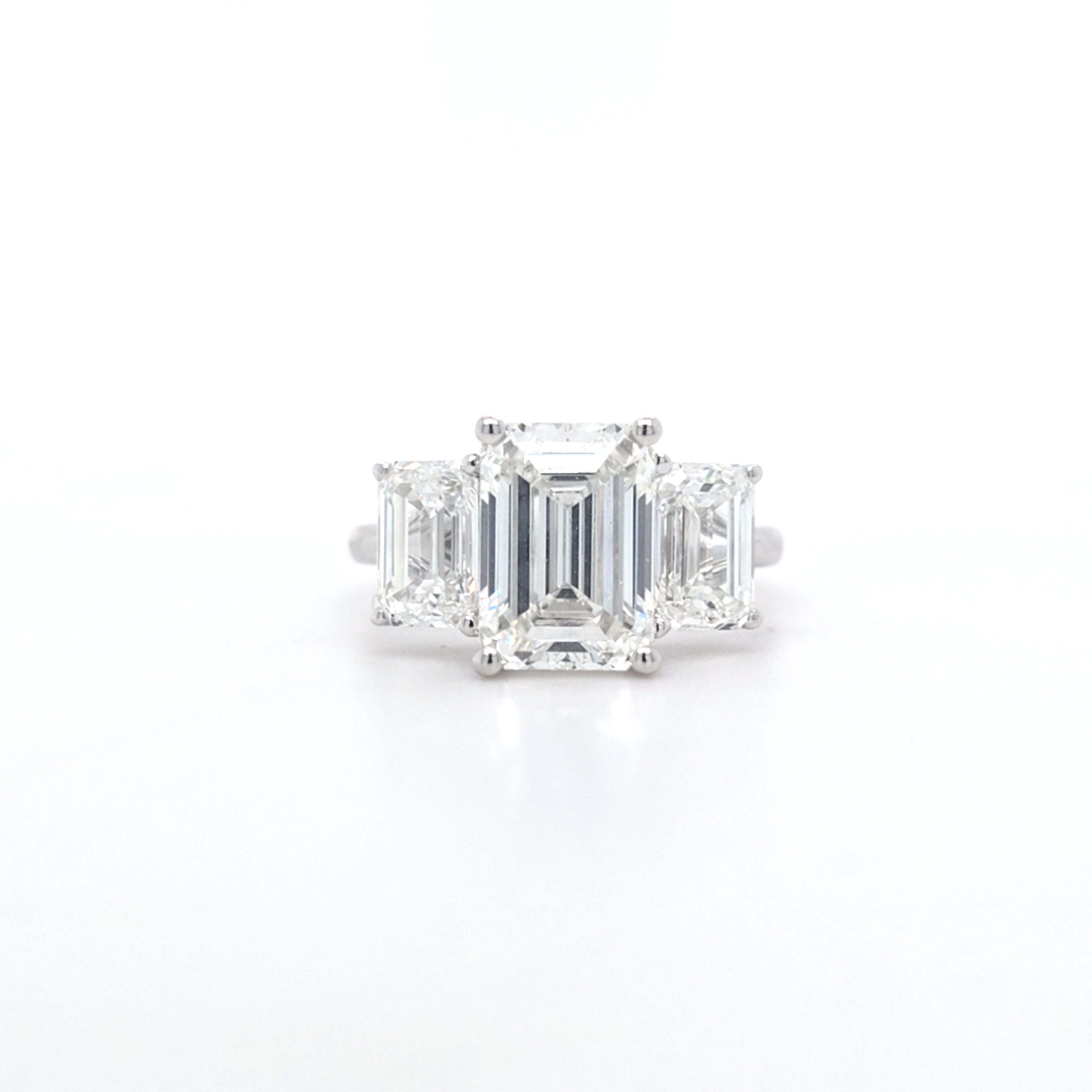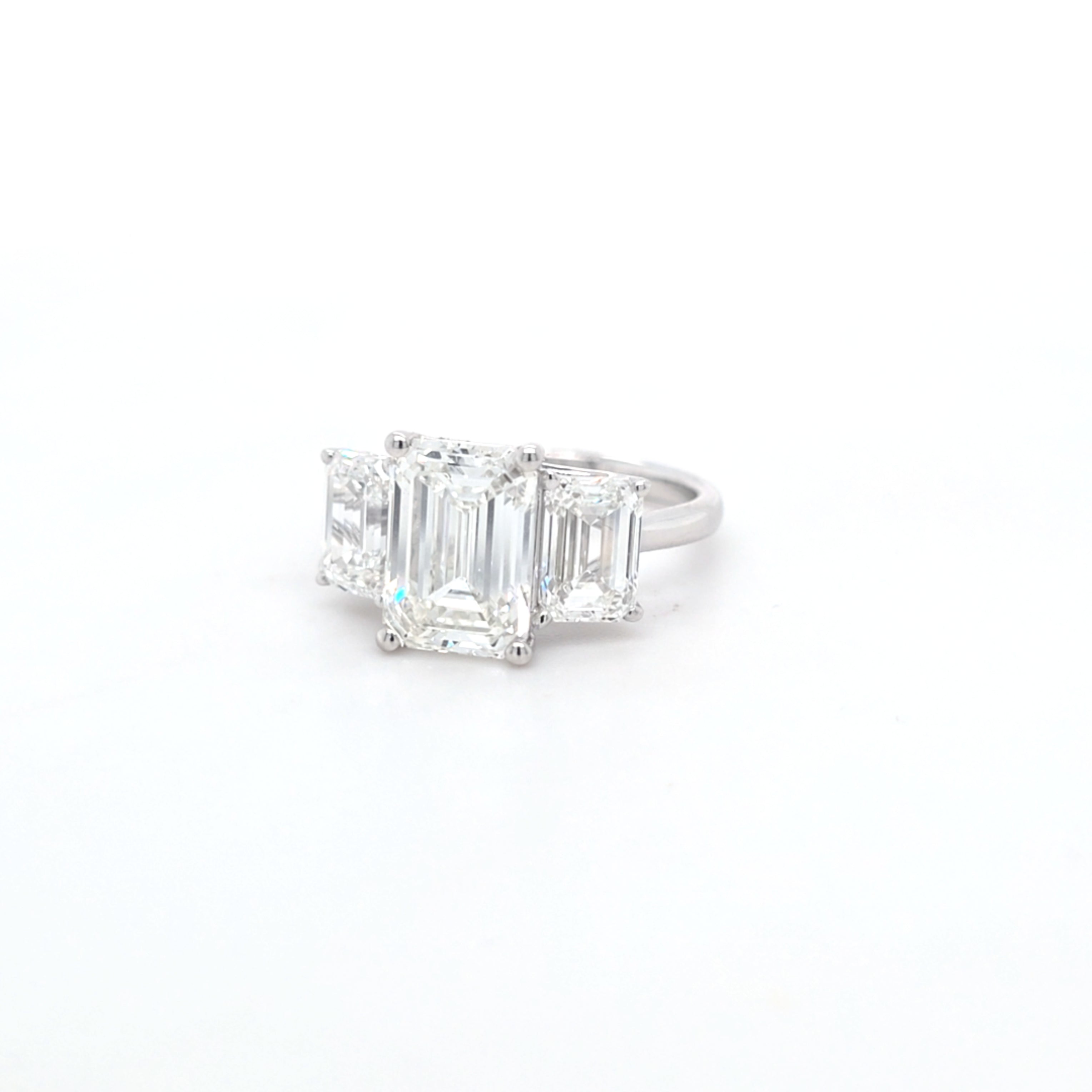 5.06ct G/VVS2 Emerald Cut LAB Diamond 3 Stone Ring Set in White Gold