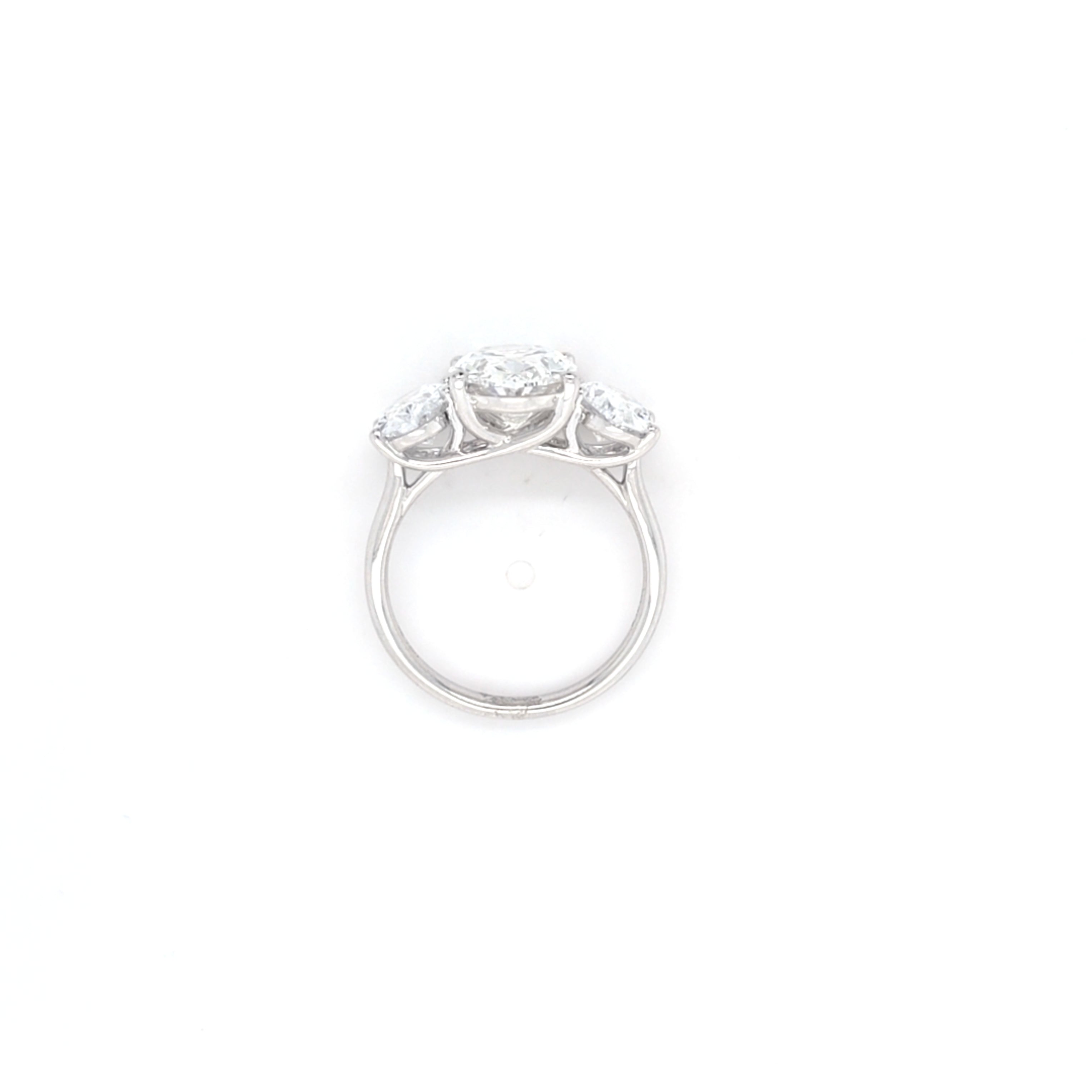 Three stunning LAB Grown diamond with a total weight of 5.18ct take centre stage in this sophisticated three stone ring. The Oval brilliant cut stones, graded F colour and VS1 clarity, delivers exceptional sparkle and brilliance. Flanked by complementary accent stones, the design showcases timeless elegance whilst the white gold setting provides a lustrous, durable foundation. Lab diamonds offer the same optical and physical properties as mined stones at a more accessible price point, making this piece an intelligent choice for discerning buyers seeking quality without compromise.