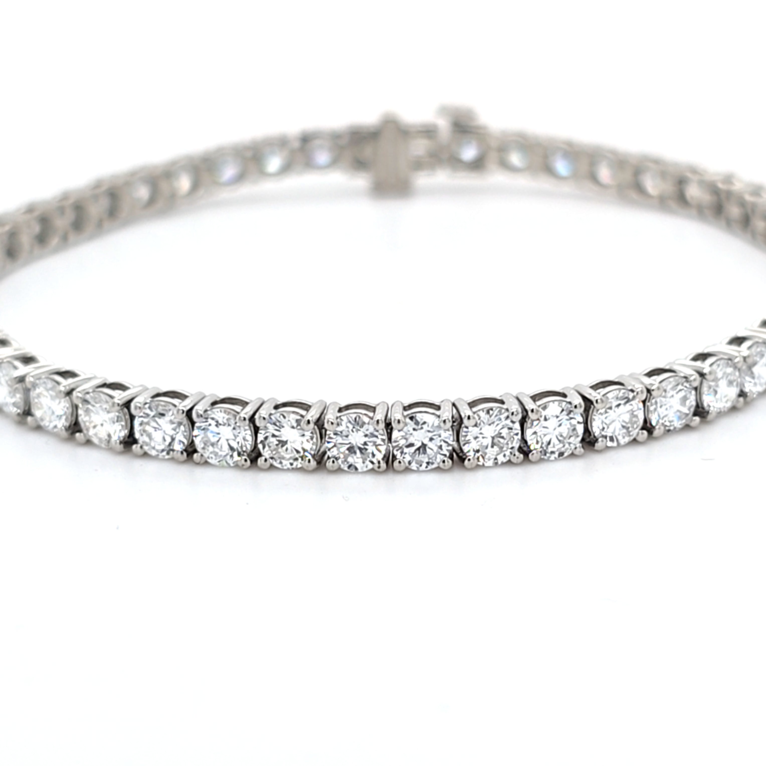 Beautiful Classic Lab Diamond Line Bracelet Set in Platinum, set with Bright White Sparkling Round Brilliant Cut Diamonds.