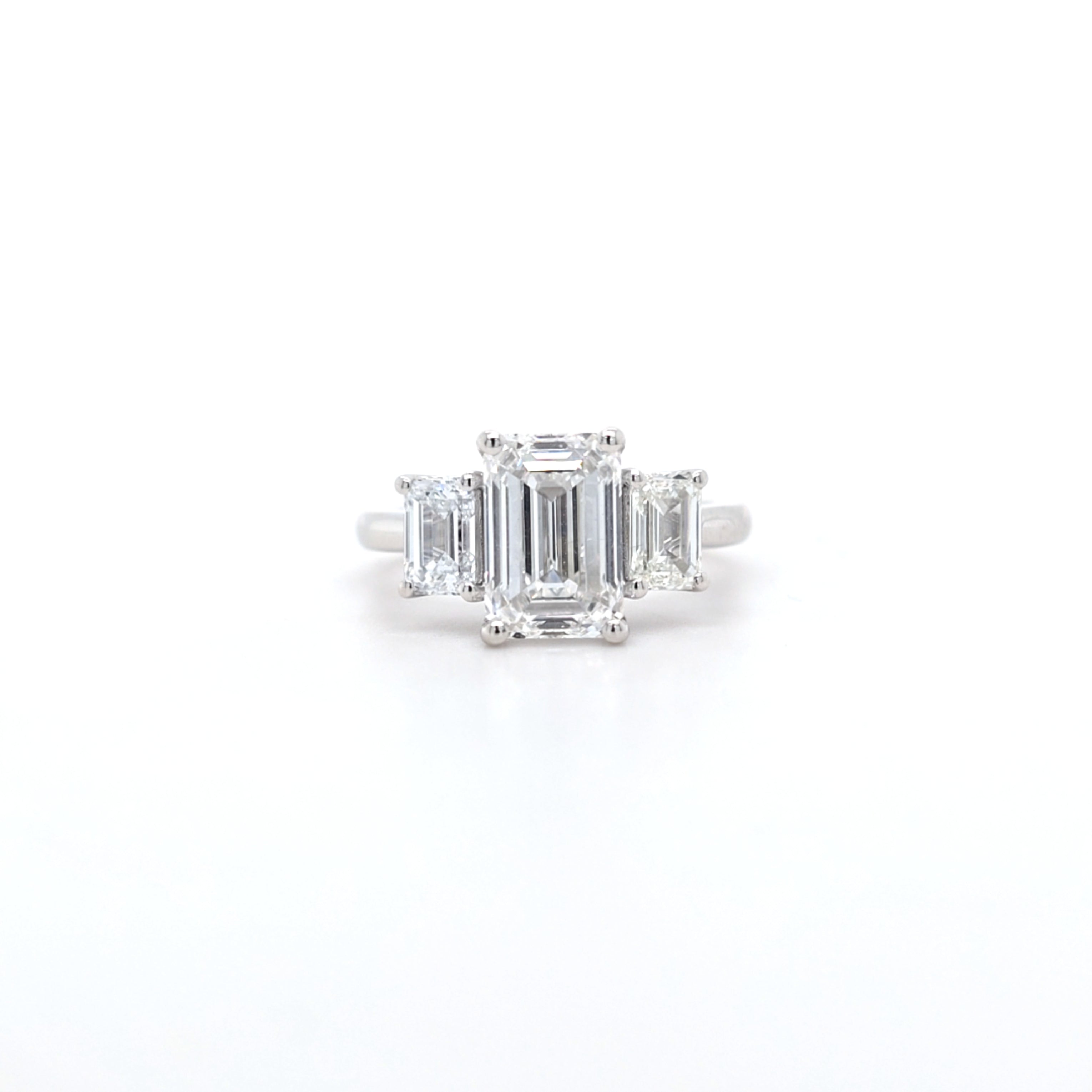 IGI 2.54ct D/VS1 Emerald Cut LAB Diamond Solitaire 3 Stone Ring Set in Platinum